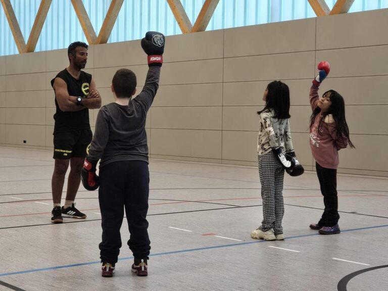 Mit großem Engagement begleitete Memo das Boxtraining, auch die Betreuerinnen der Kindertrauergruppe, sowie die Zugehörigen der Kinder wurden einbezogen.